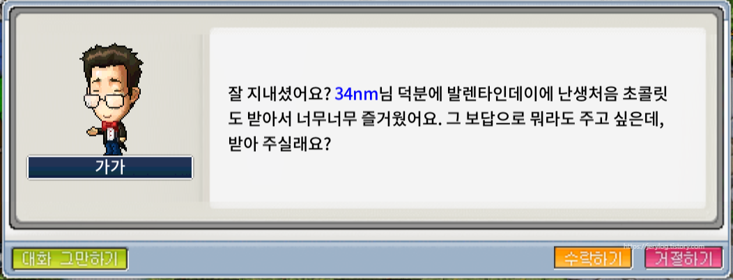 소정의 메소와 준비된 재료들을 쿠커스에게 들고 가면 드디어 하트 초콜릿을 만들어주는데,