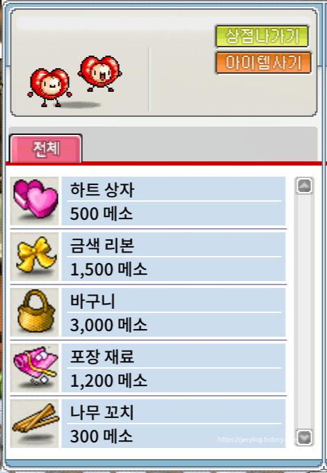 화이트커버춰 : 2025년 2월 14일 오후 6:20 기준 개당 5,000메소